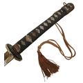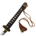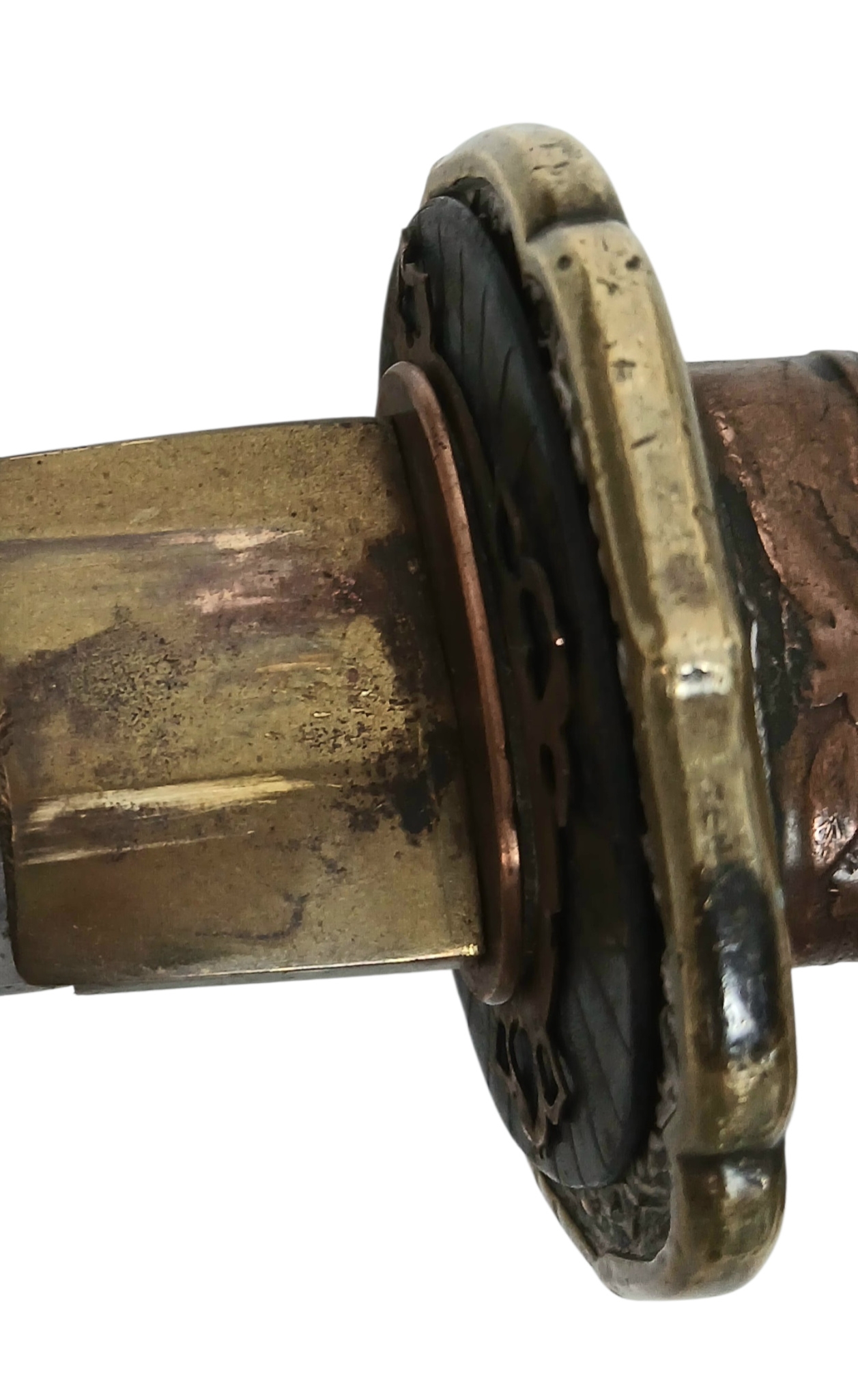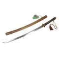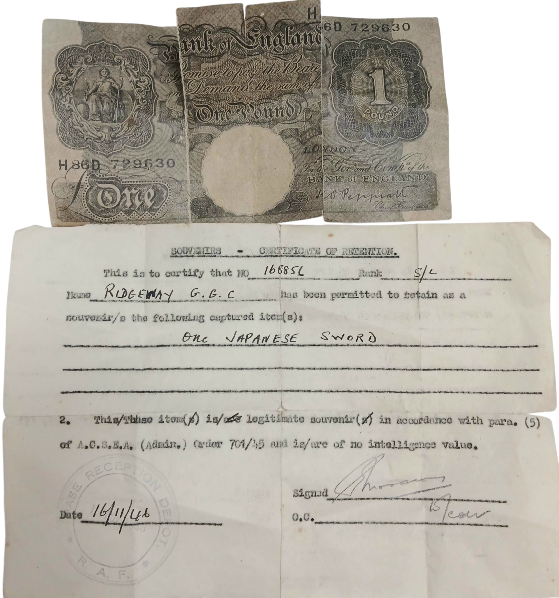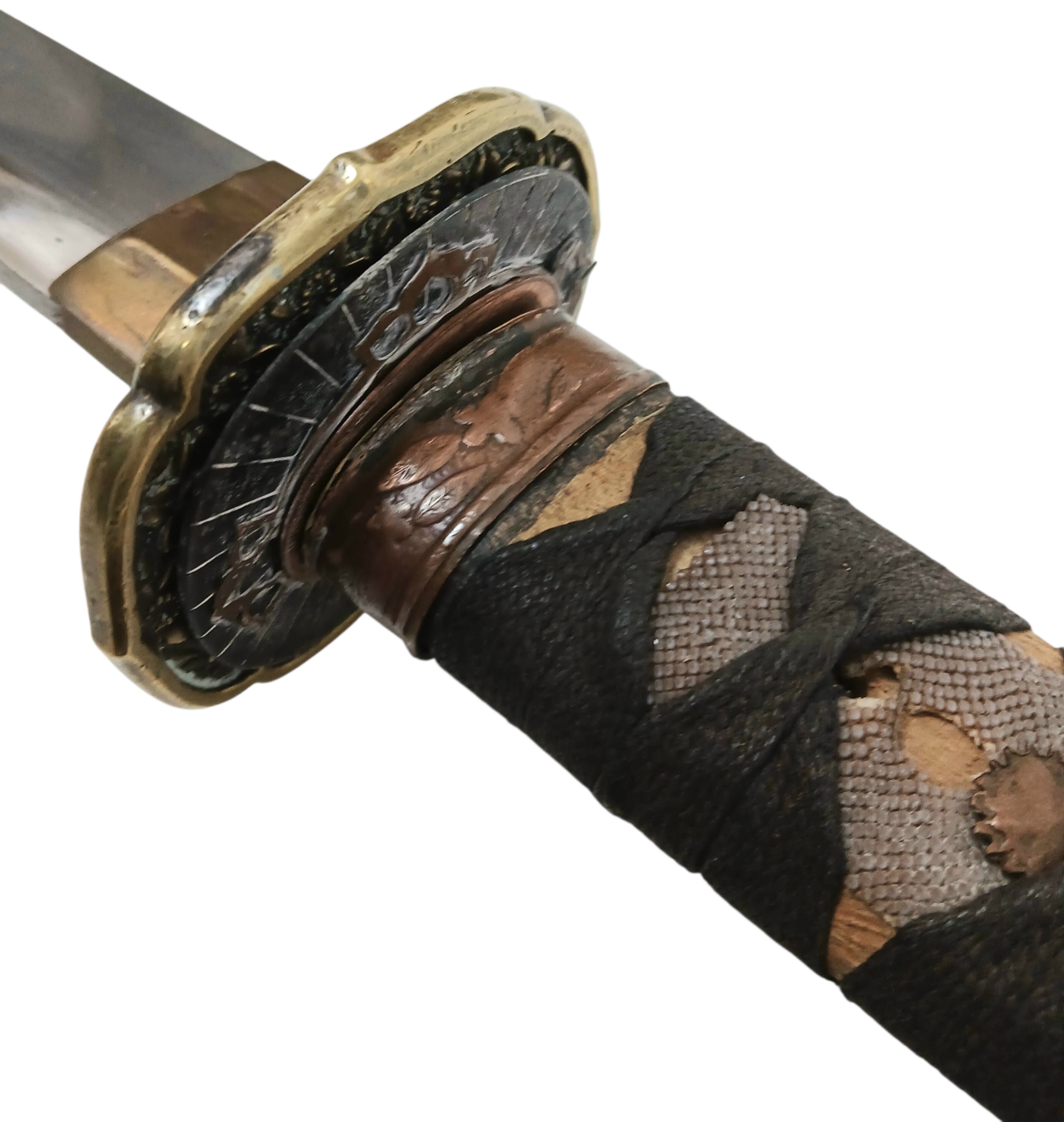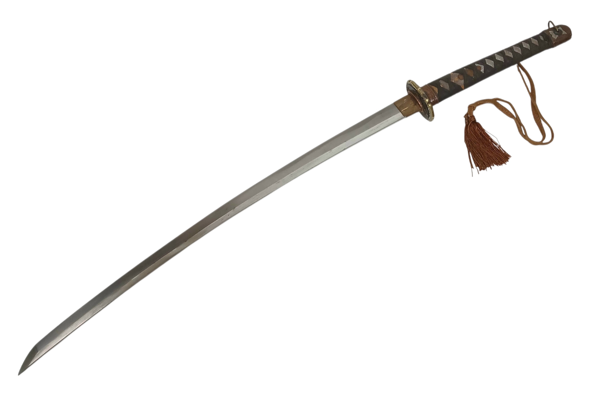 WW2 Japanese Officers Katana Sword. Complete with knot and leather scabbard cover. Brought back from the Middle East by an RAF Chaplain. A very nice blade with superb Hamon. Although the tang is unmarked it is without a doubt a very quality sword, Most likely a family hand down. Comes with the official certificate of retention. UK Mainland shipping only.