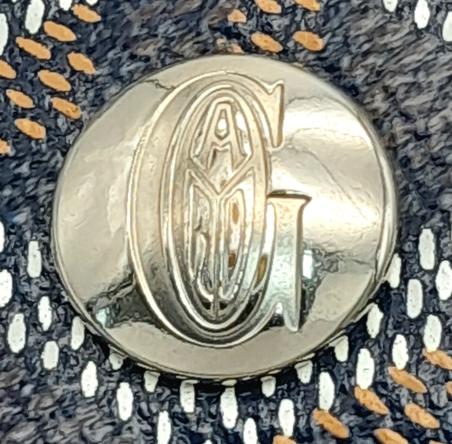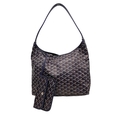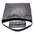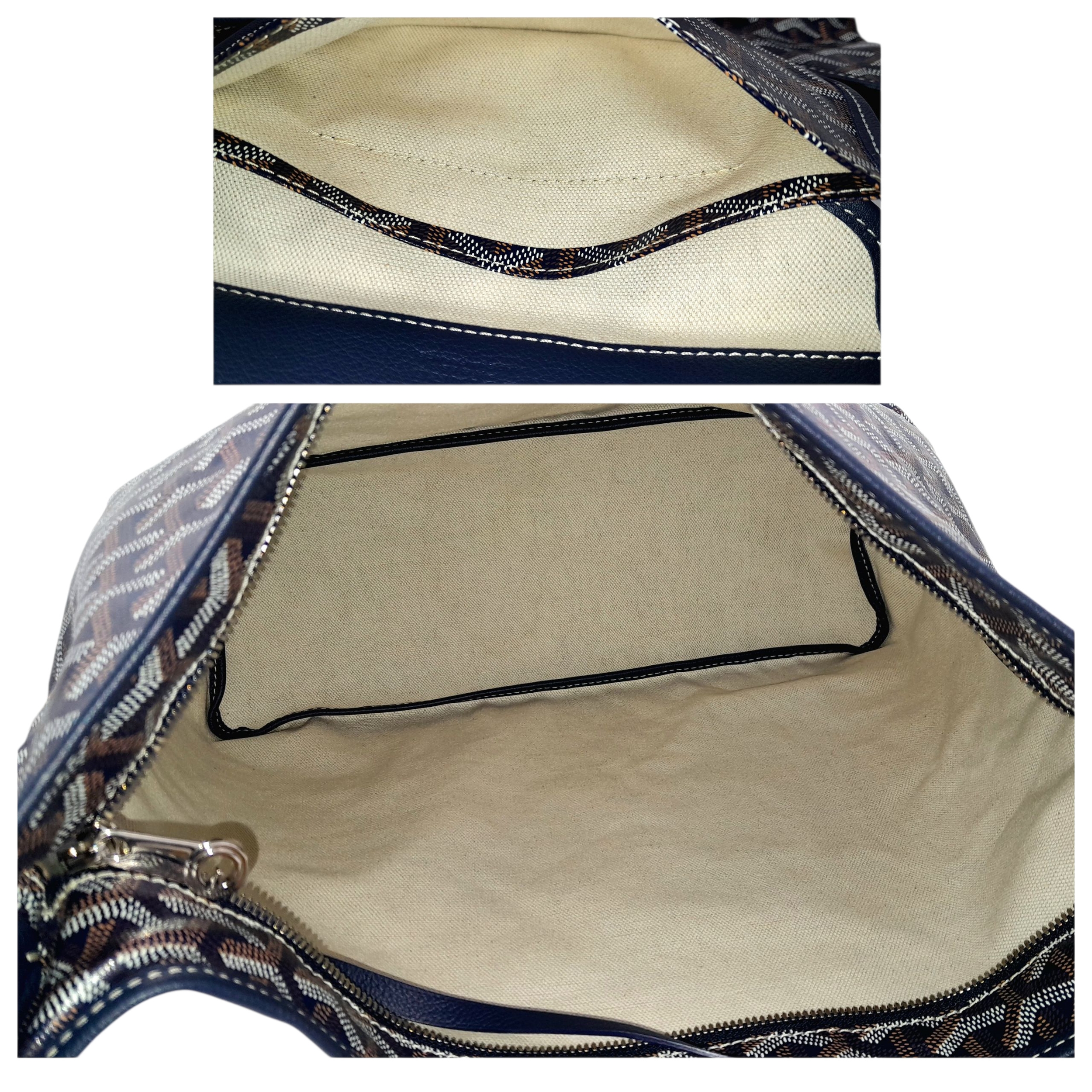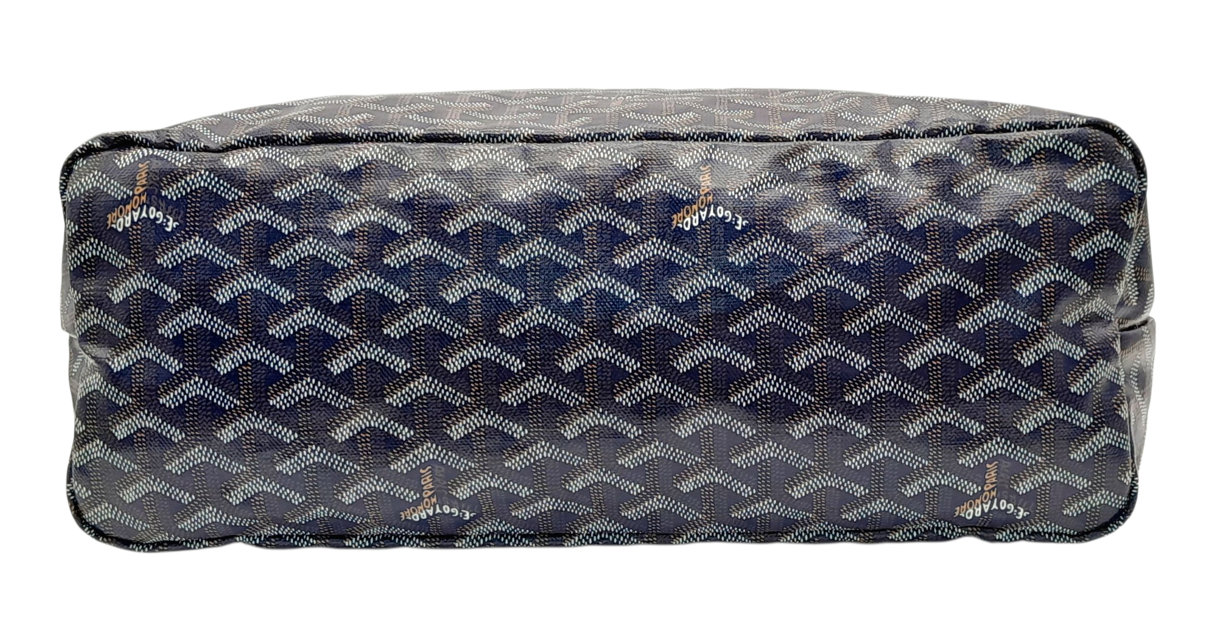A Goyard Saint Louis Hobo Bag in Navy Goyardine Canvas. Navy blue and brown canvas exterior with silver-toned hardware, shoulder strap and zip-top closure. Beigh canvas interior with a single main compartment and an attached matching pouch. Some tiny stains to the interior but in good condition overall. Approx 39cm height x 27cm length x 11cm width. Comes with a care booklet and dust cover. Please see photos or request a condition report. Ref: JJ408.