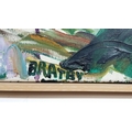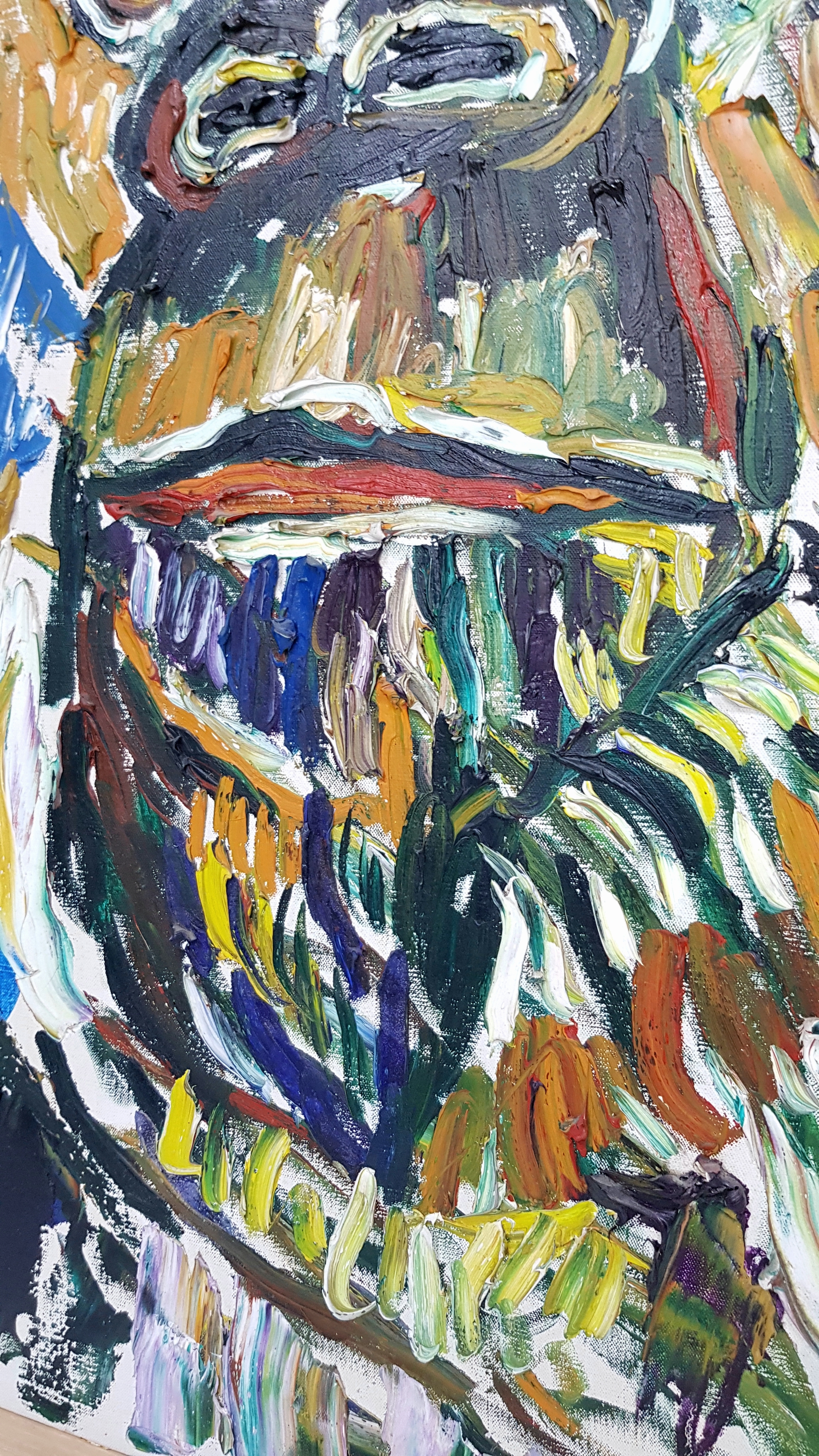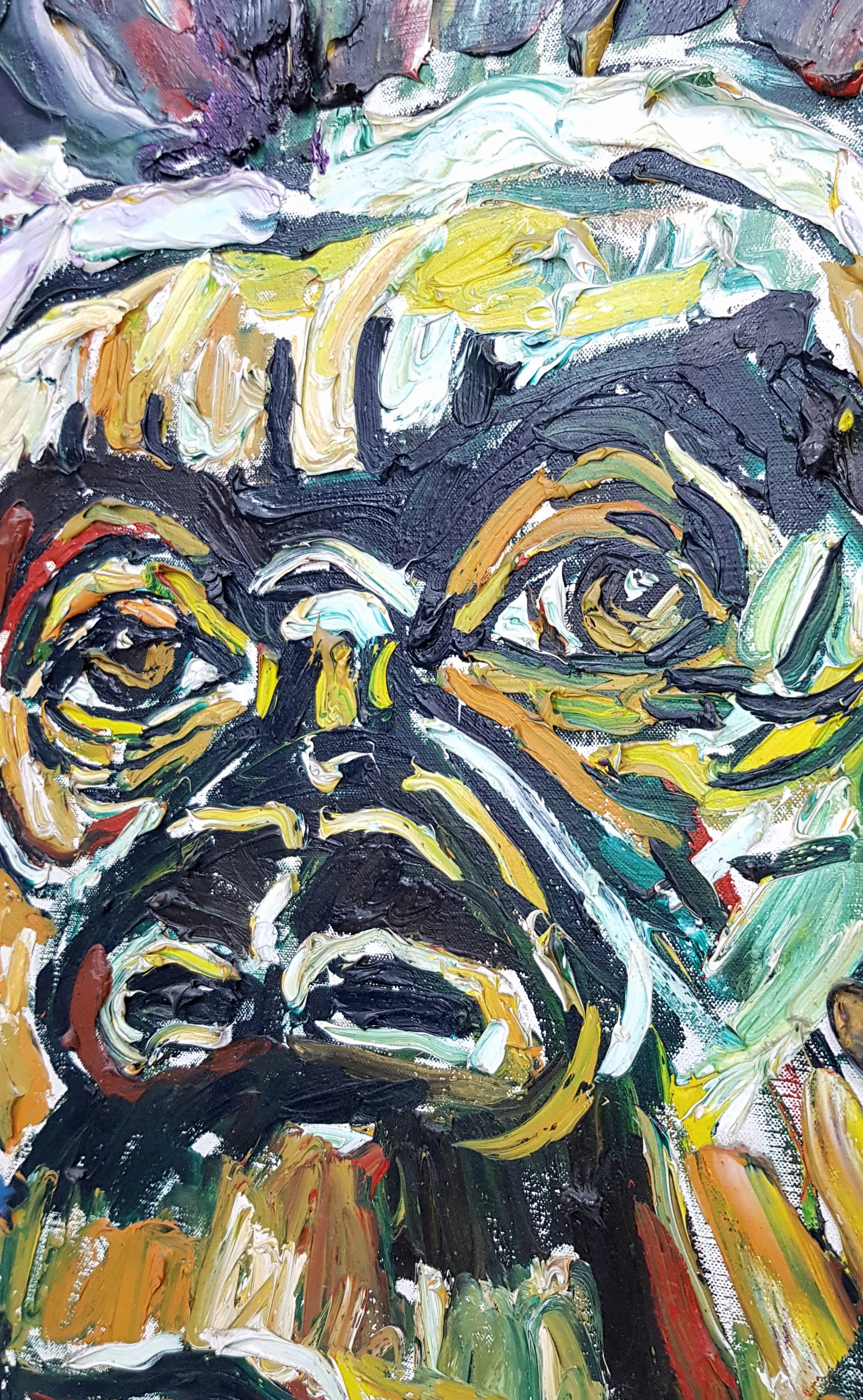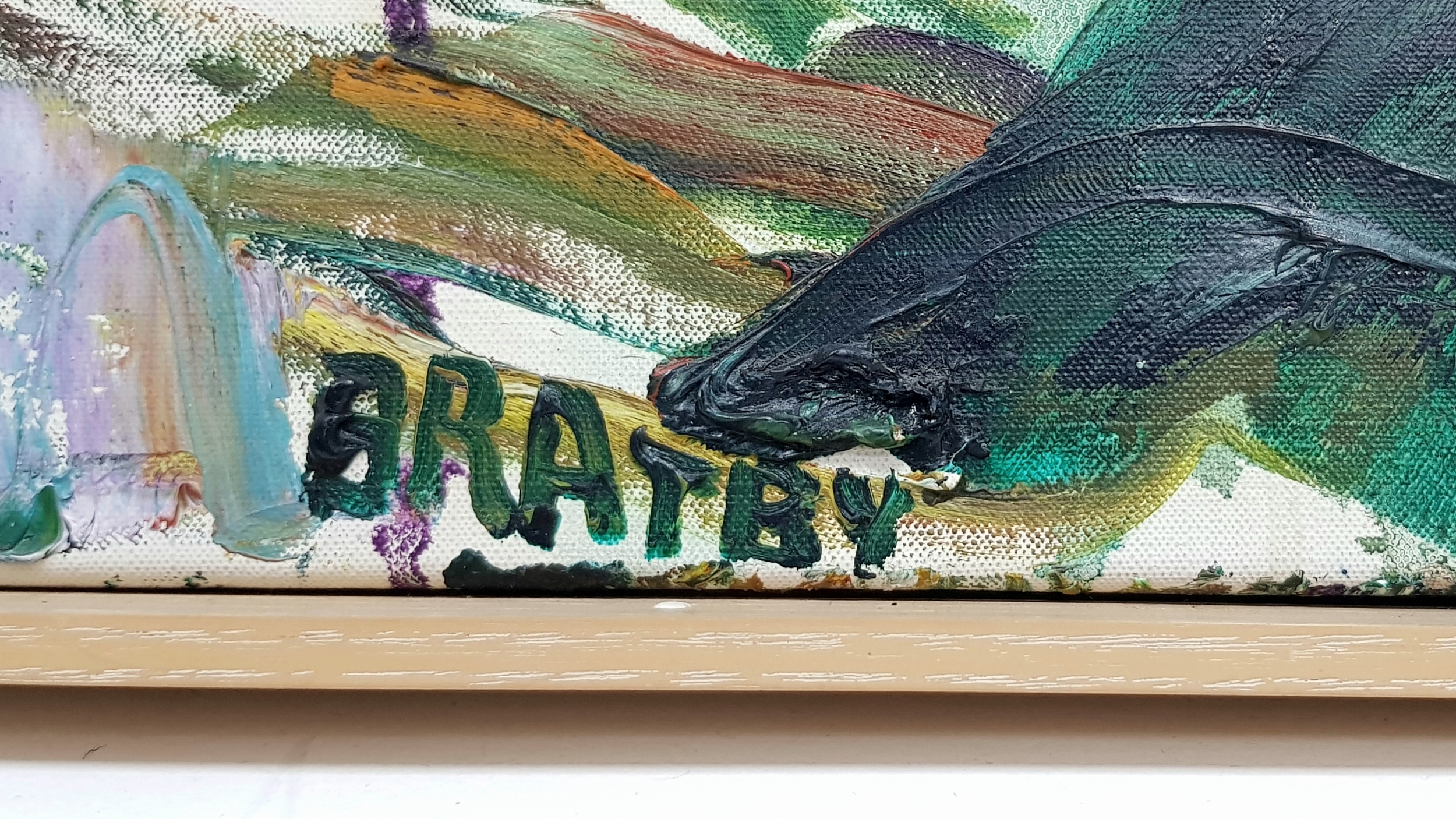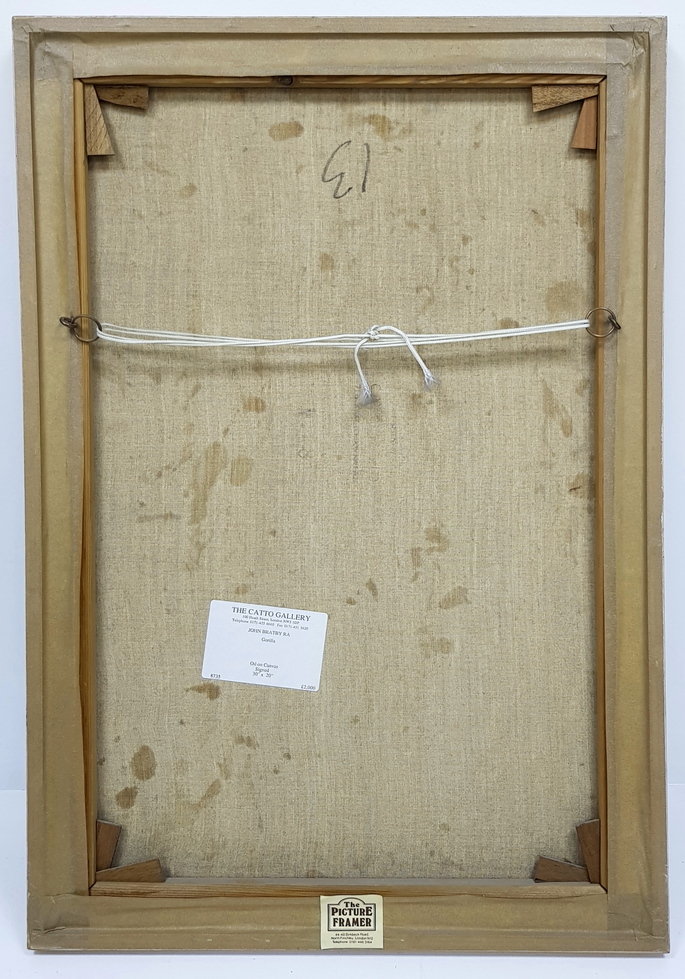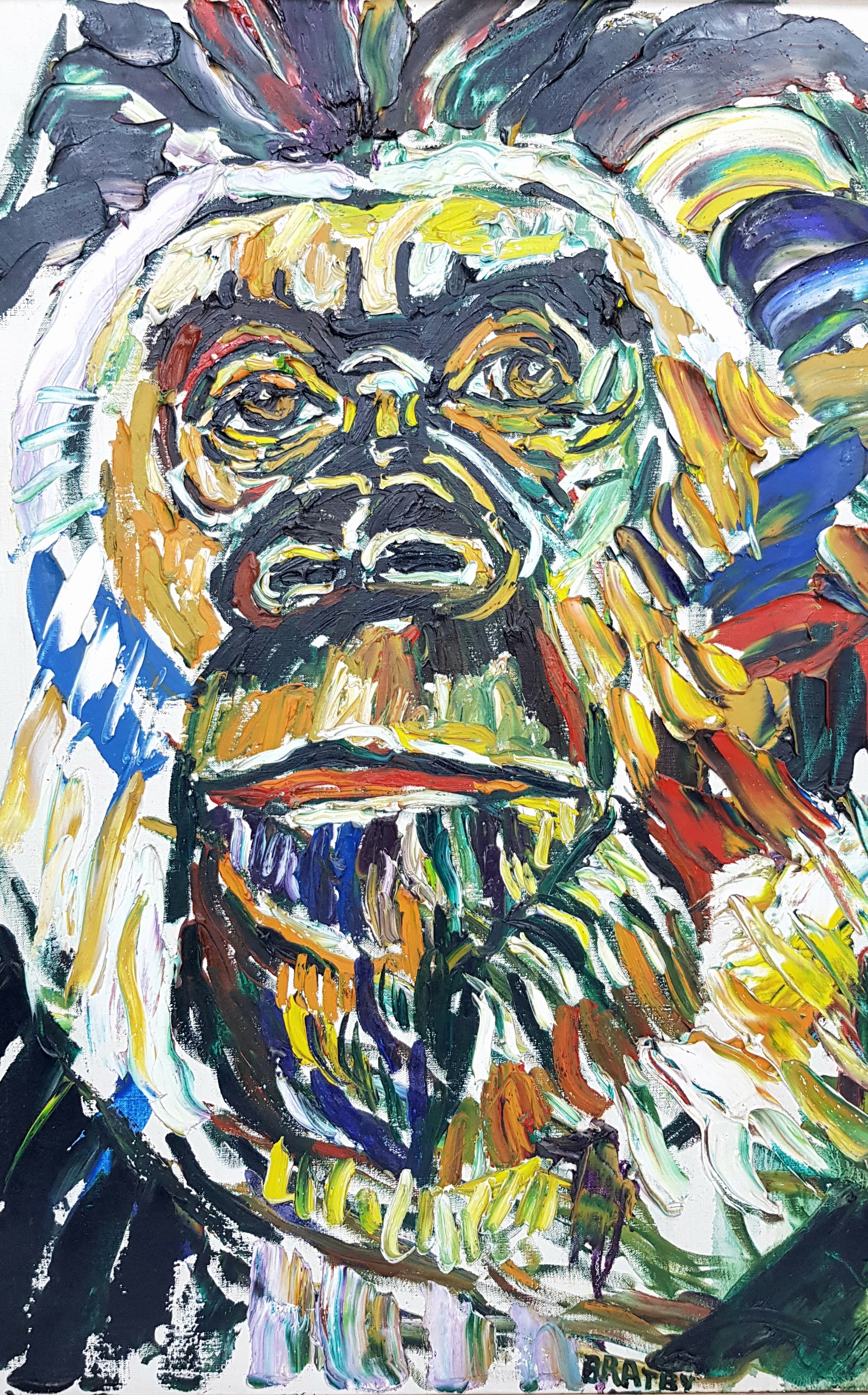 Gorilla - Oil on Canvas by Acclaimed British Artist John Bratby R.A. (1928-1992). Bratby founded the kitchen sink realism style of art that was influential in the late 1950s and later developed an affinity for Guy the Gorilla, painting several portraits of him. Signed Bratby near right corner at base. In frame - 53cm x 79cm. Original provenance verso.