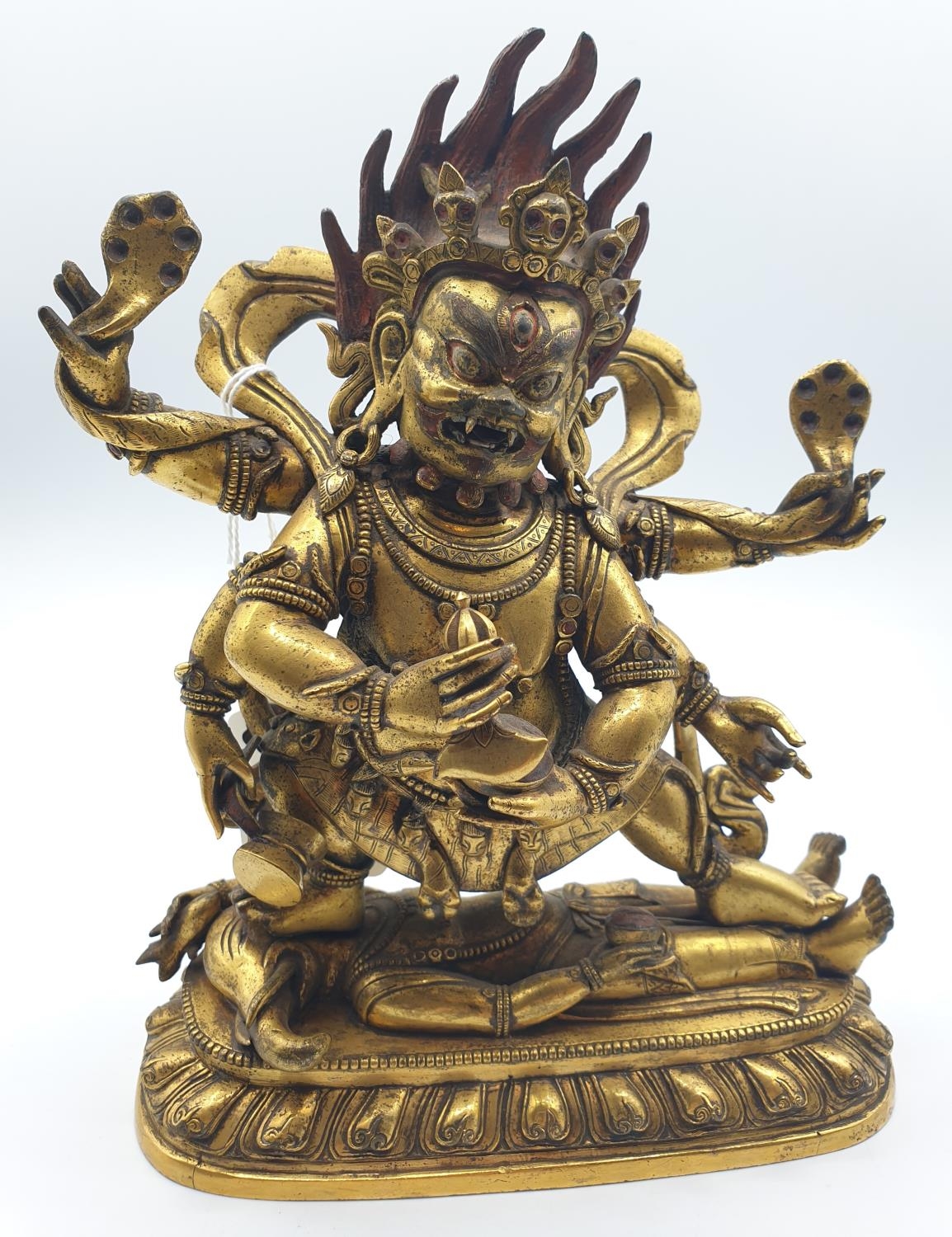 A very early gilded bronze figure of an Oriental dragon god, 19cm tall and weight 1700g.
