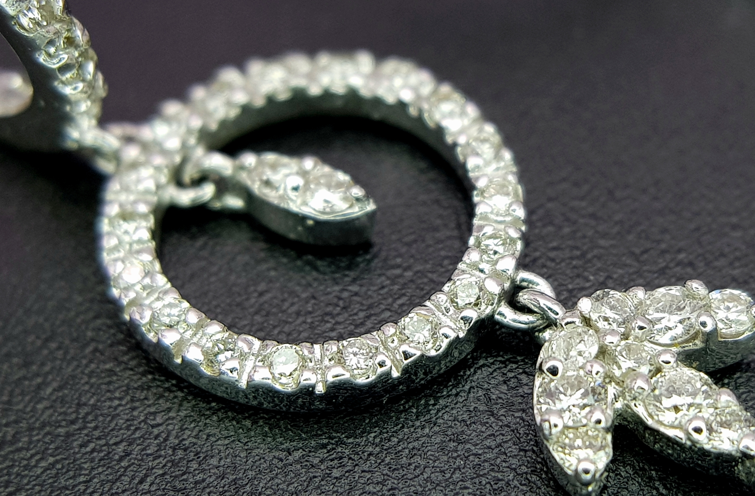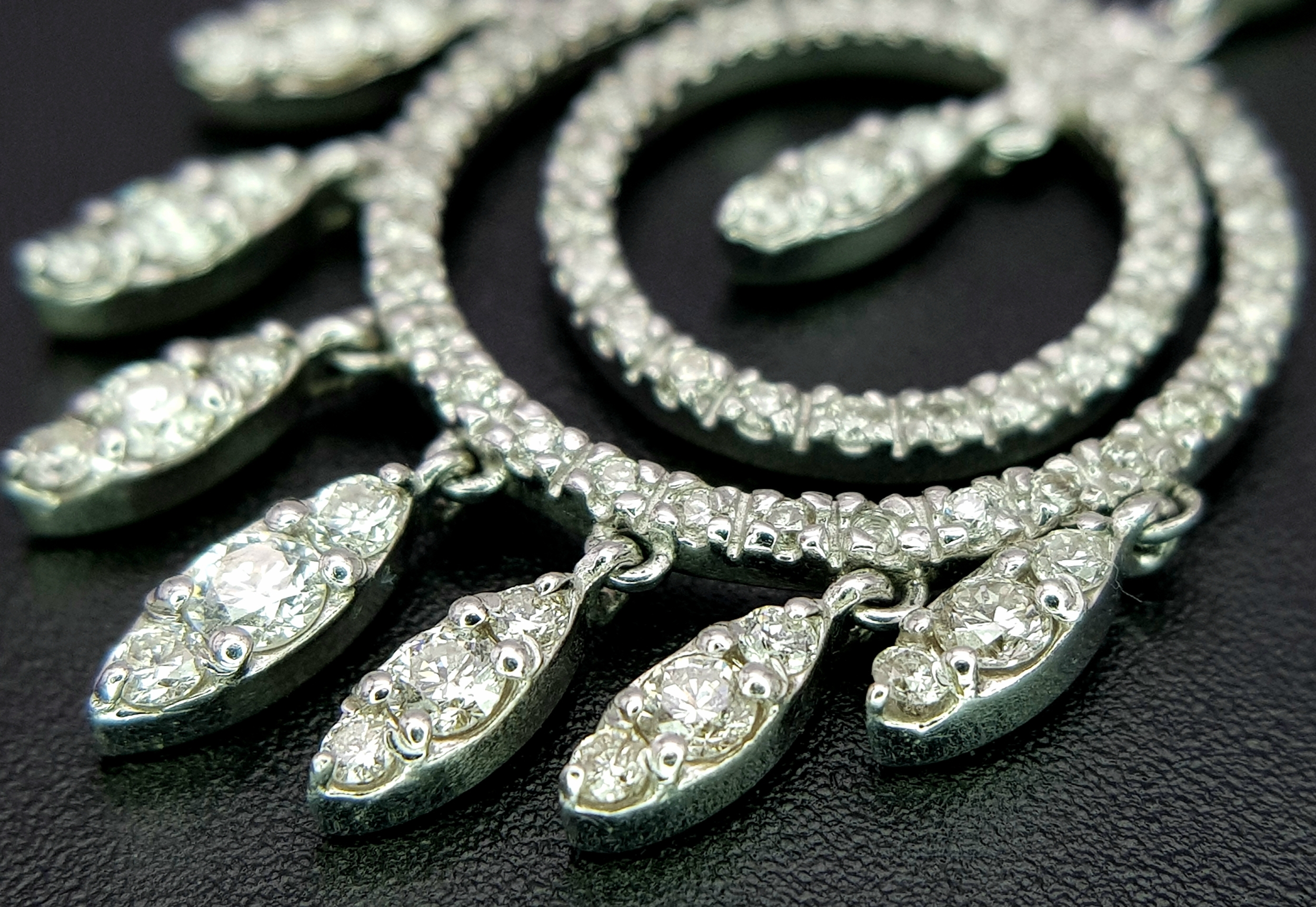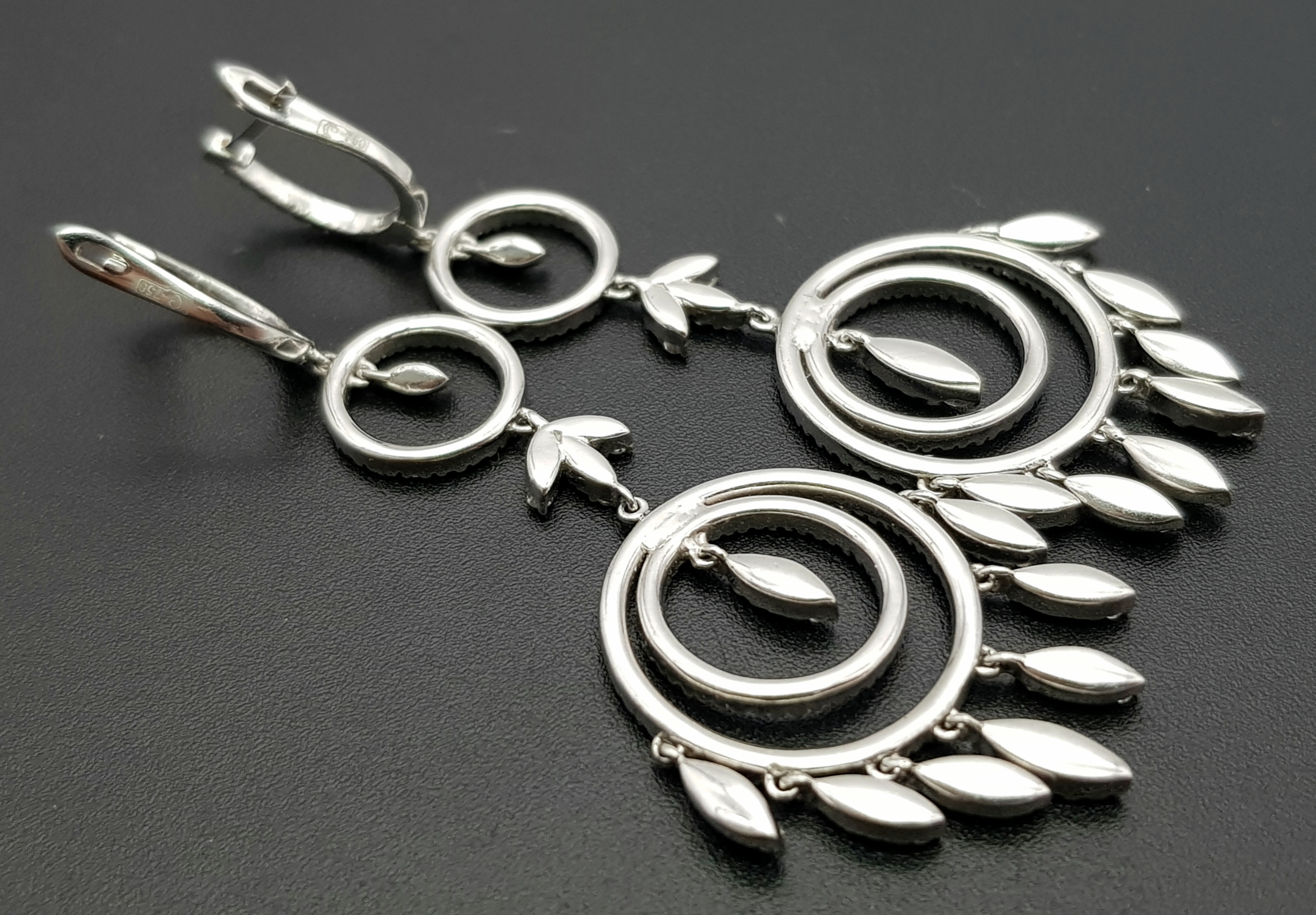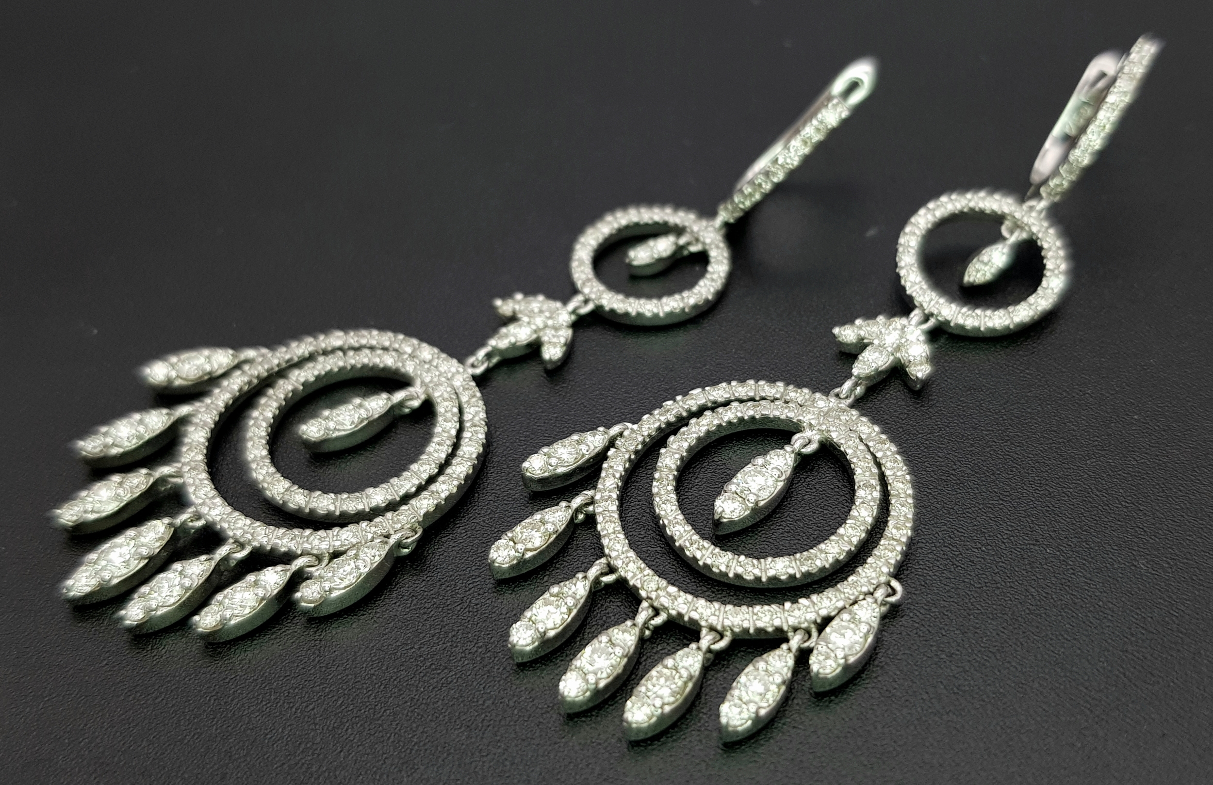 An Art Deco Style Pair of 18K White Gold, Pave Diamond Circle Drop Earrings. 6cm drop. 15.8g. Ref: 2.16