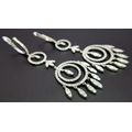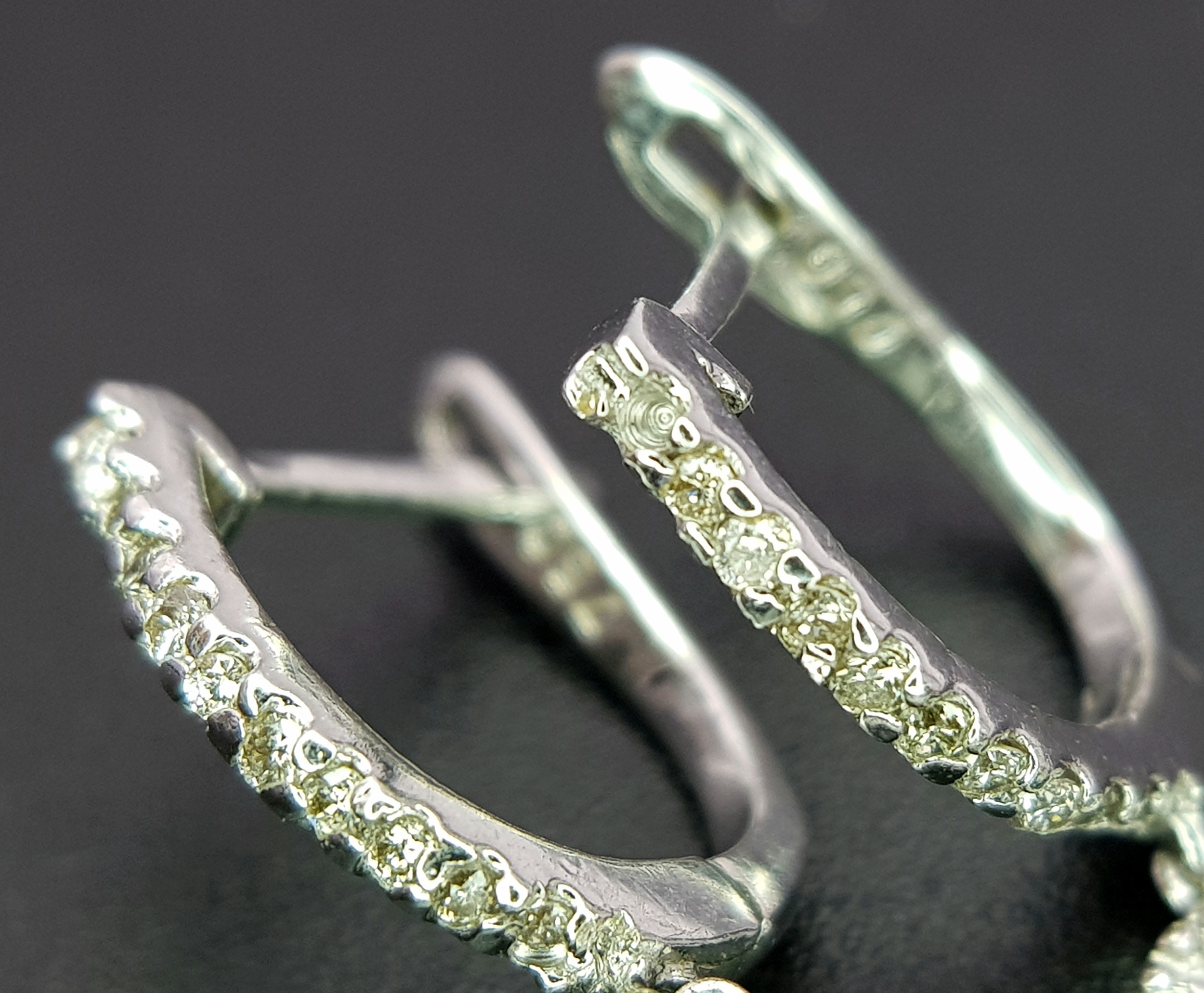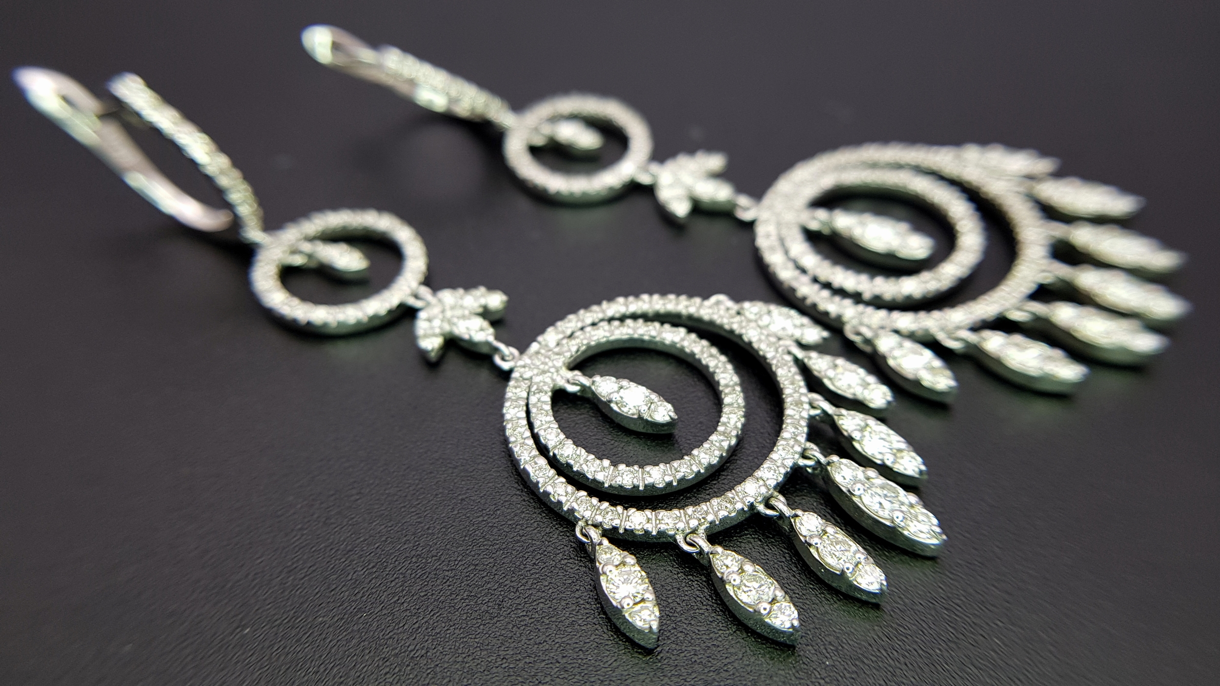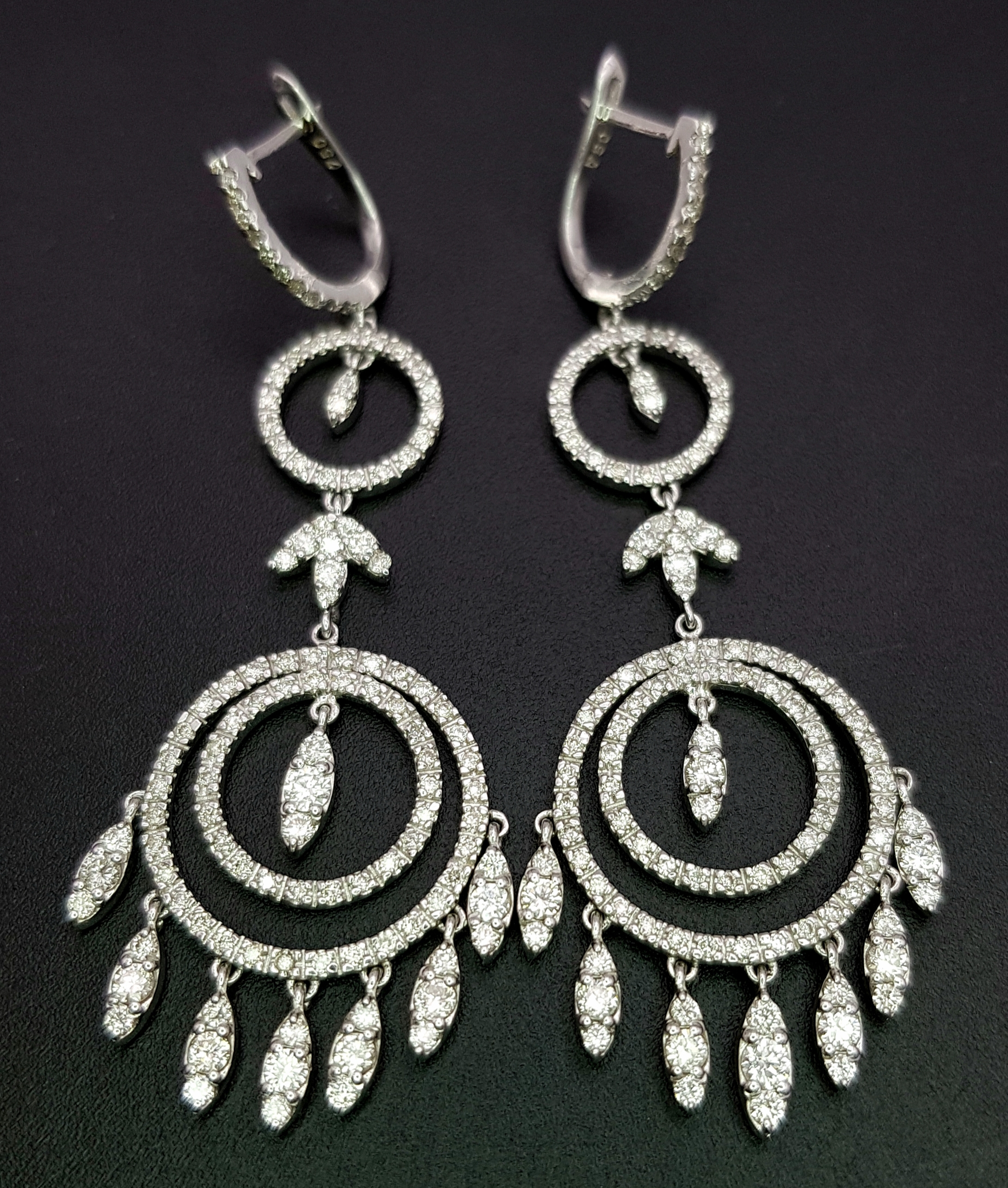 An Art Deco Style Pair of 18K White Gold, Pave Diamond Circle Drop Earrings. 6cm drop. 15.8g. Ref: 2.16