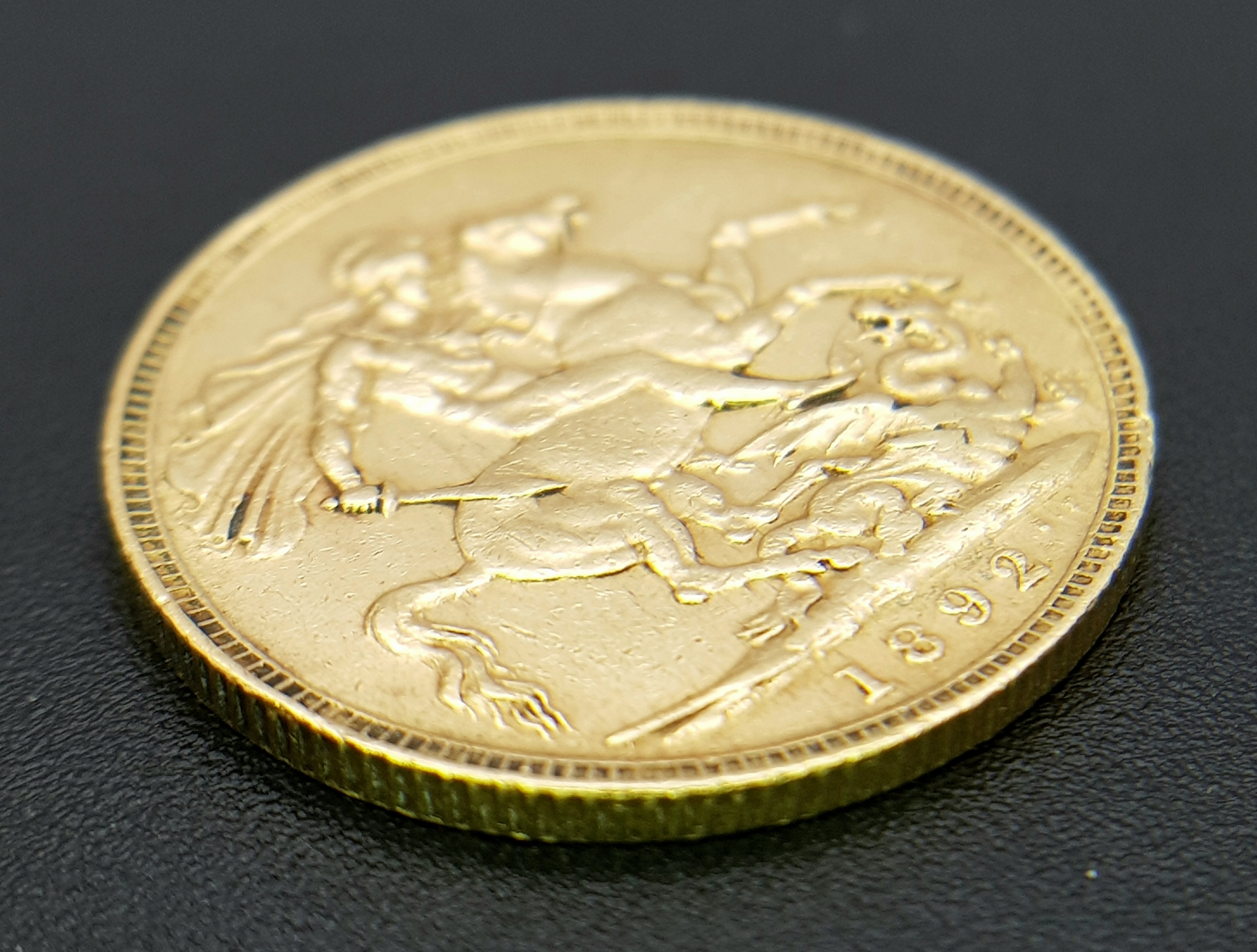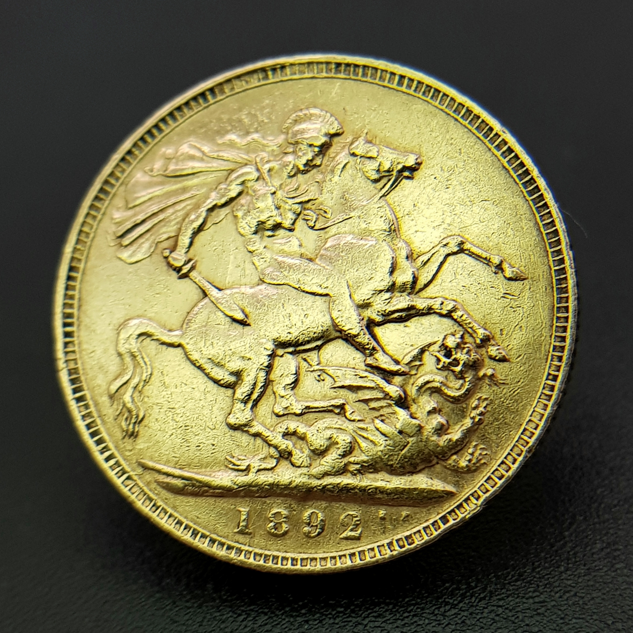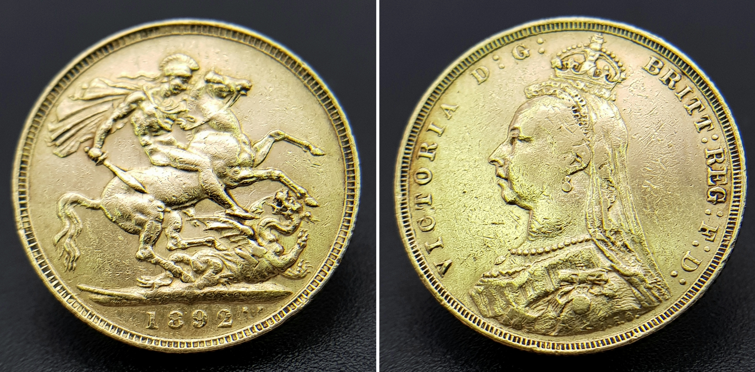 An 1892 Queen Victoria Full Sovereign 22K Gold Coin.