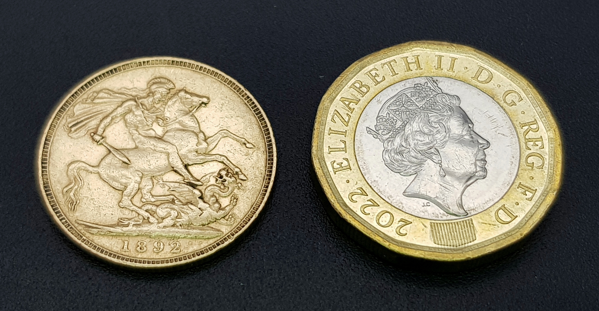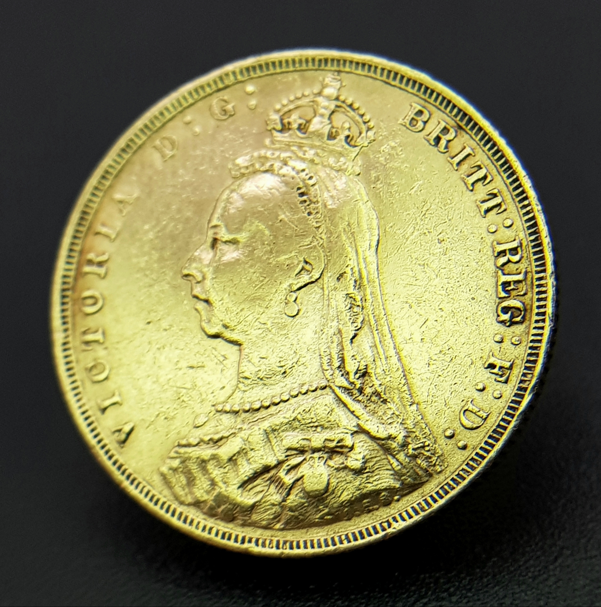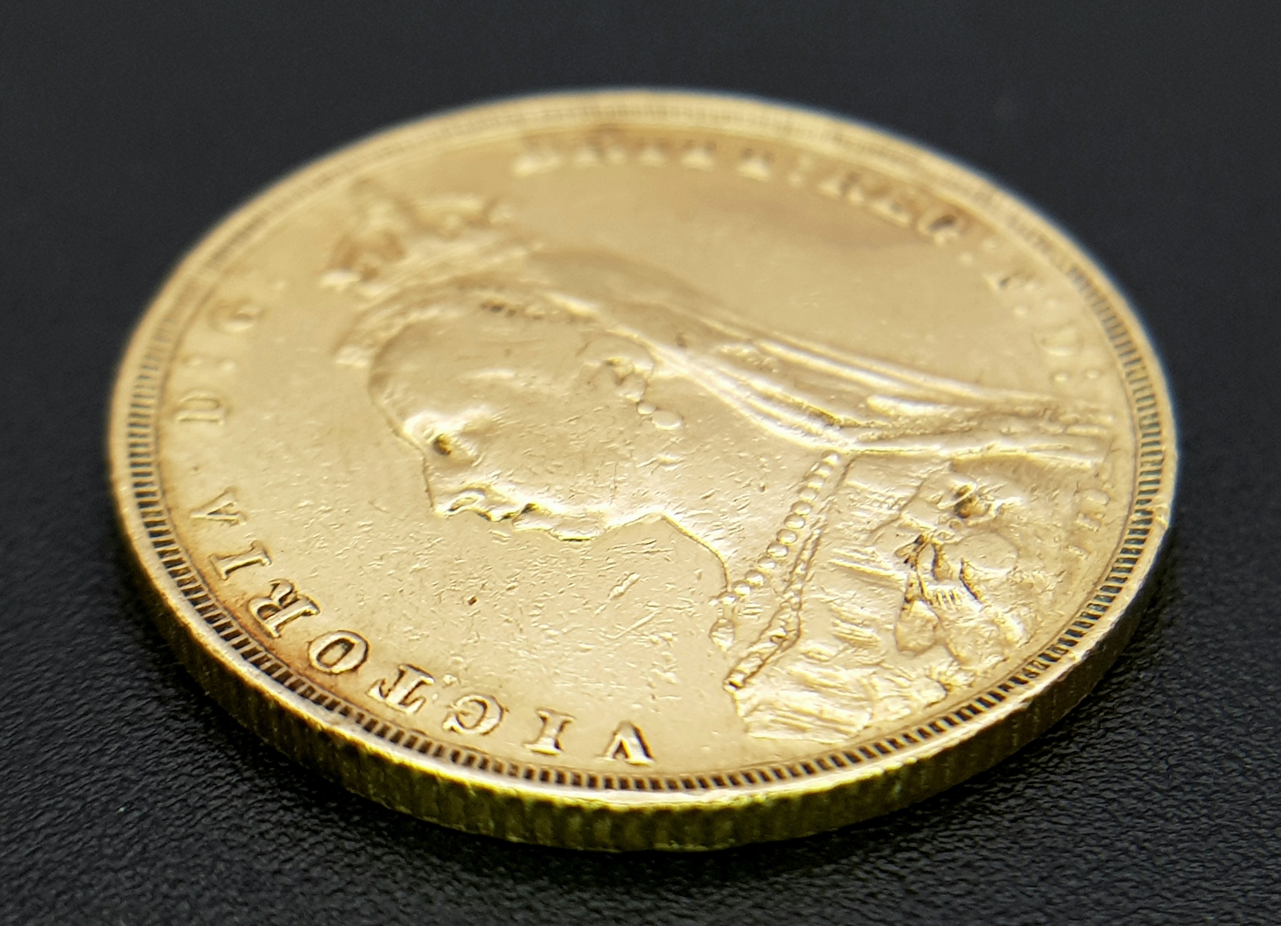 An 1892 Queen Victoria Full Sovereign 22K Gold Coin.